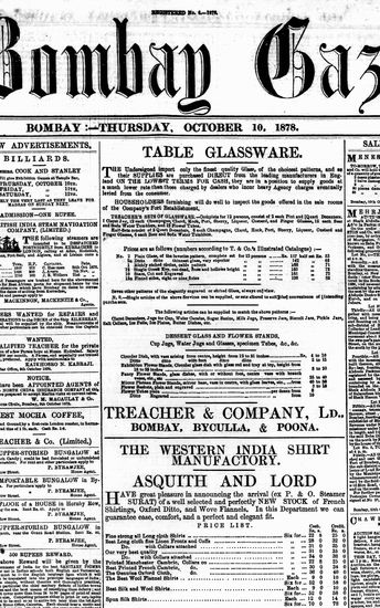 The Bombay Gazette, 10 October 1878
