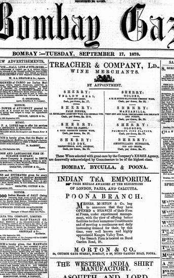 The Bombay Gazette, 17 September 1878