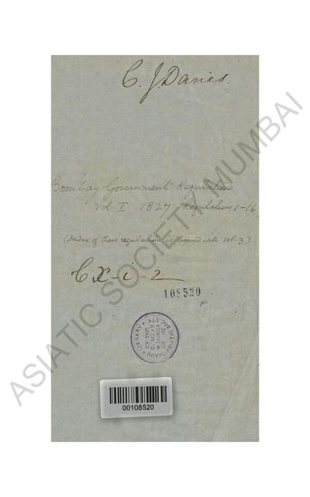 Bombay Government Regulations, Vol. I, Regulations 1-16 ...