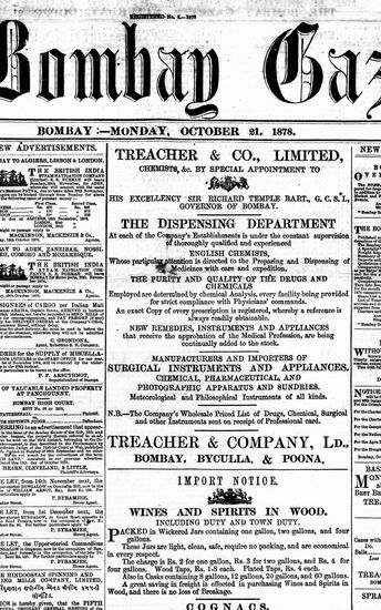 The Bombay Gazette, 21 October 1878