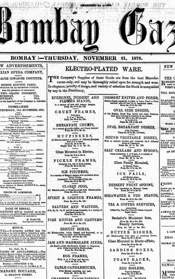 The Bombay Gazette, 21 November 1878