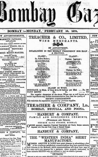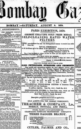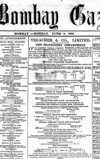 The Bombay Gazette, 9 October 1879