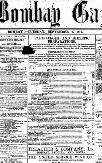 The Bombay Gazette, 9 September 1879
