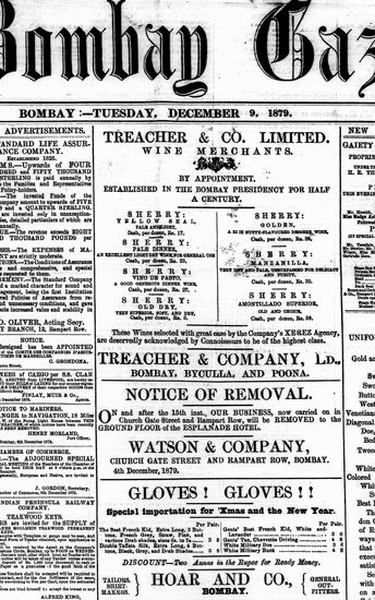 The Bombay Gazette, 9 December 1879