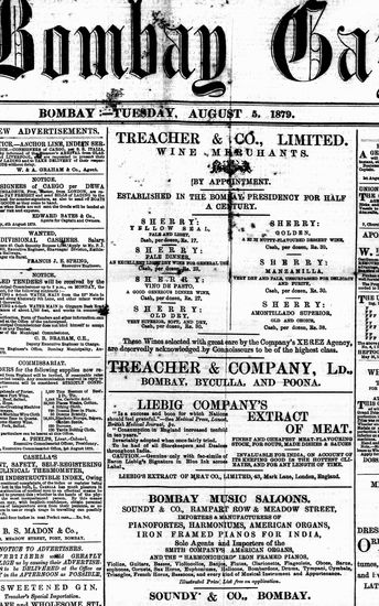 The Bombay Gazette, 5 September 1879