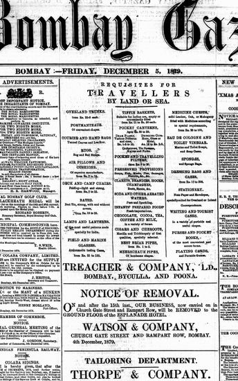 The Bombay Gazette, 5 December 1879