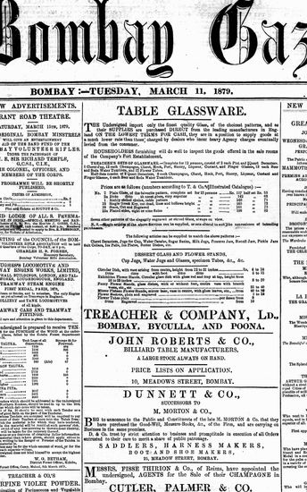 The Bombay Gazette, 11 March 1879