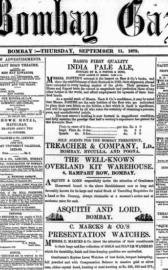 The Bombay Gazette, 11 October 1879