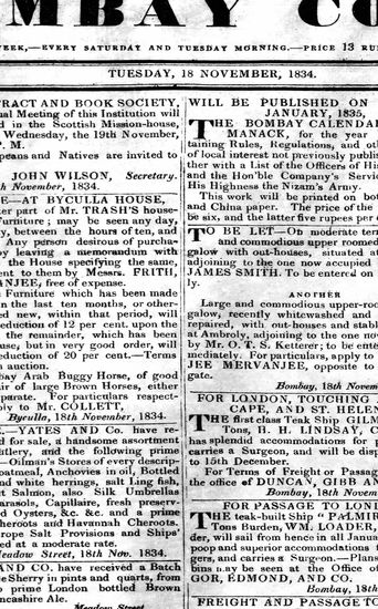 Bombay Courier, 18 November 1834