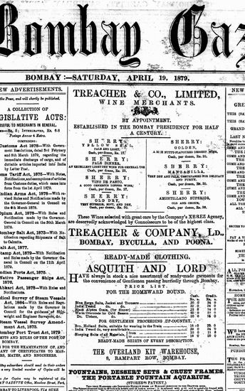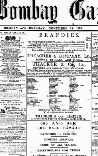 The Bombay Gazette, 19 November 1879