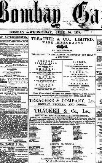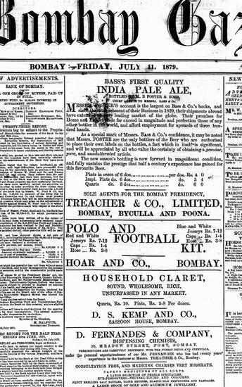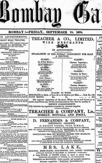 The Bombay Gazette, 19 September 1879