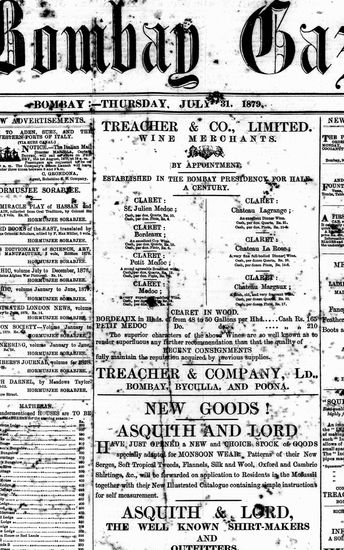 The Bombay Gazette, 19 August 1879