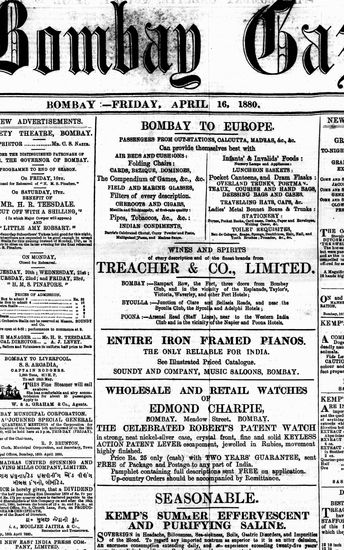 The Bombay Gazette, 19 April 1880