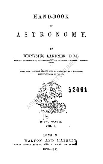 Handbook of Astronomy, in Two Volumes, Vol. I
