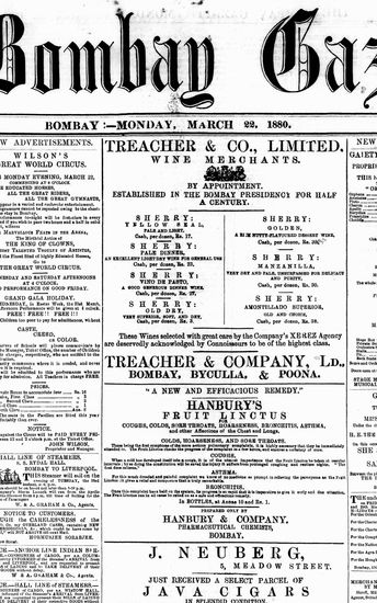 The Bombay Gazette, 22 March 1880
