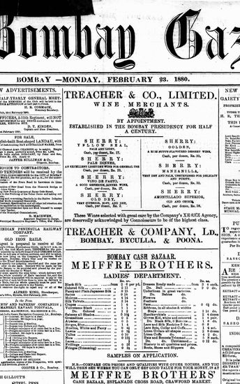 The Bombay Gazette, 23 February 1880