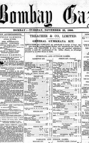 The Bombay Gazette, 23 November 1880