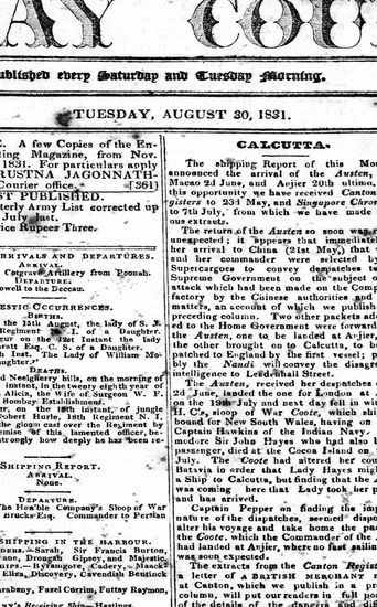 Bombay Courier, 30 August 1831