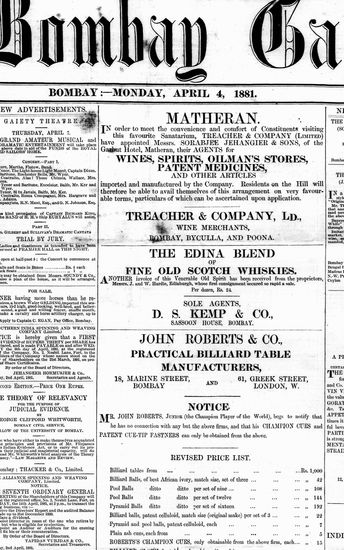 Bombay Government Gazette 1881. Part II. Miscellaneous ...