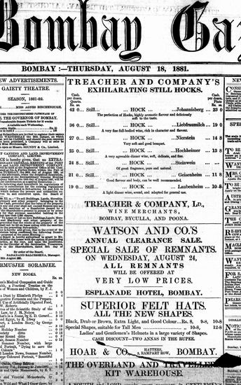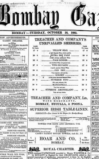 The Bombay Gazette, 18 October 1881