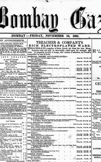 The Bombay Gazette, 18 November 1881