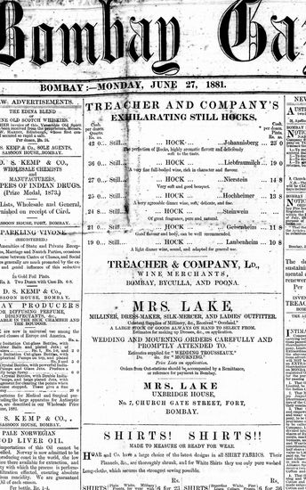 The Bombay Gazette, 27 September 1881