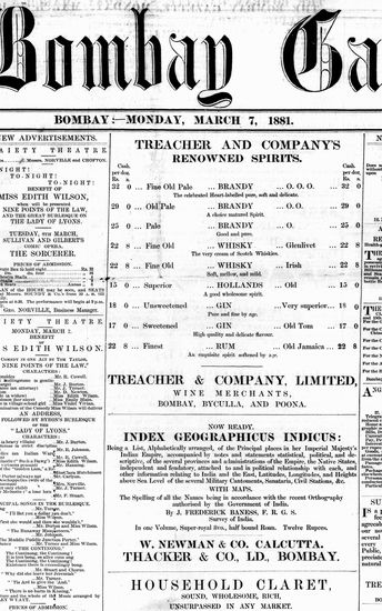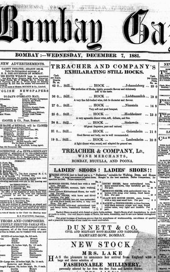 The Bombay Gazette, 7 December 1881