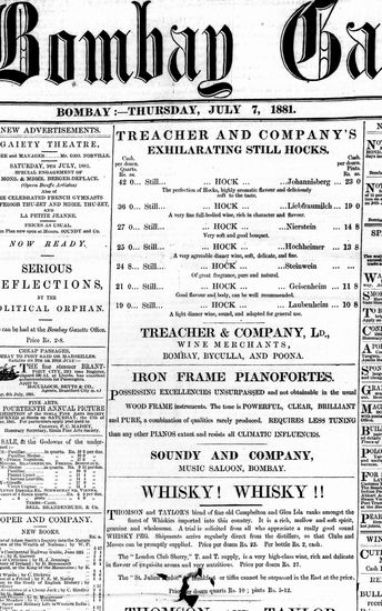The Bombay Gazette, 7 July 1881