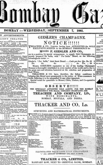 The Bombay Gazette, 7 September 1881