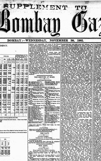 The Bombay Gazette, 30 November 1881