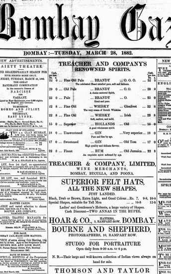 The Bombay Gazette, 28 March 1882
