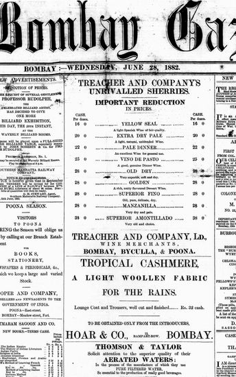 The Bombay Gazette, 28 June 1882