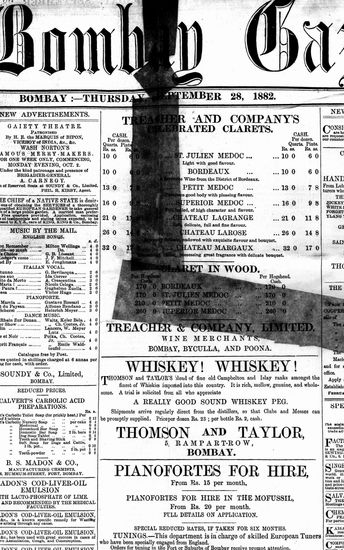 The Bombay Gazette, 28 September 1882