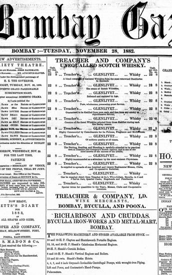 The Bombay Gazette, 28 November 1882