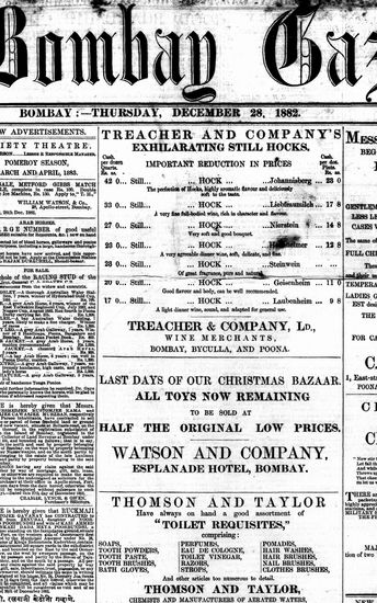 The Bombay Gazette, 28 December 1882