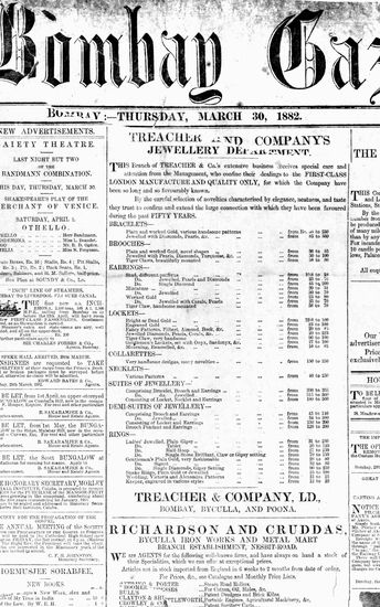 The Bombay Gazette, 30 March 1882