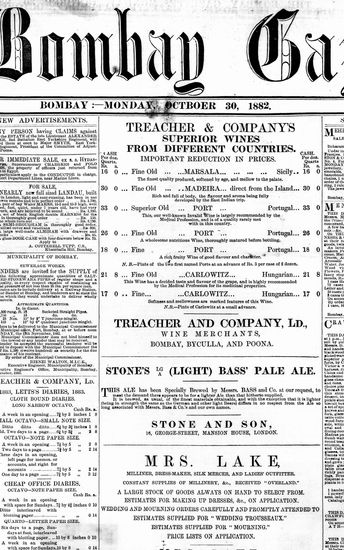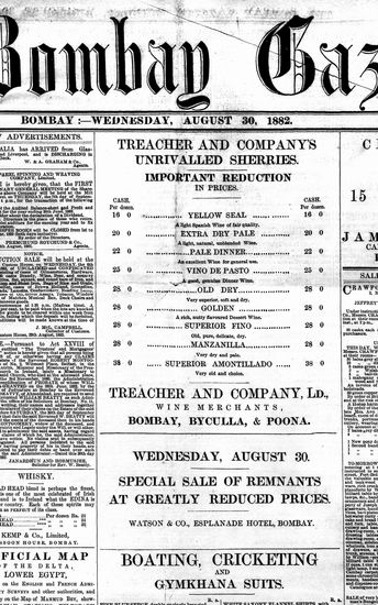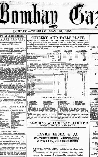 The Bombay Gazette, 30 October 1882