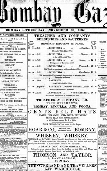 The Bombay Gazette, 30 November 1882