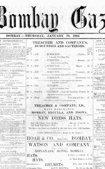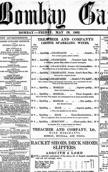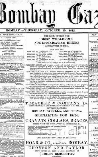 The Bombay Gazette, 19 October 1882