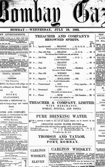 The Bombay Gazette, 19 July 1882