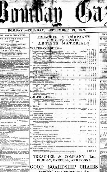 The Bombay Gazette, 19 September 1882