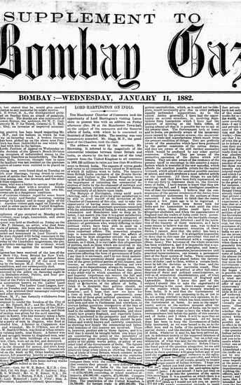 The Bombay Gazette, 18 October 1882