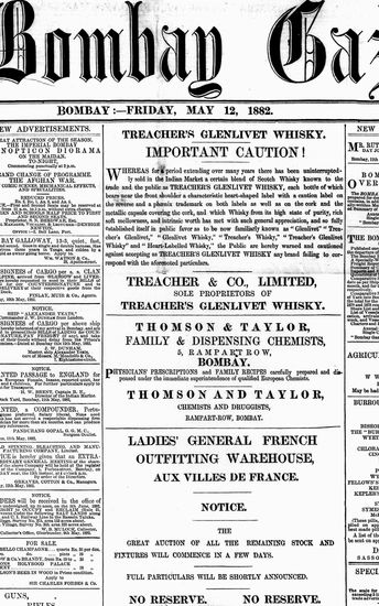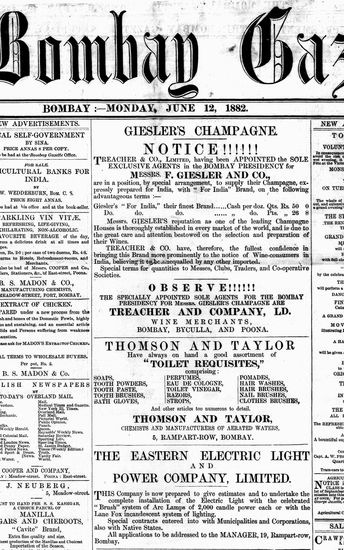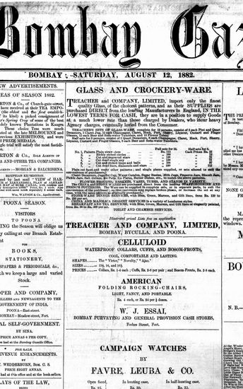 The Bombay Gazette, 12 October 1882