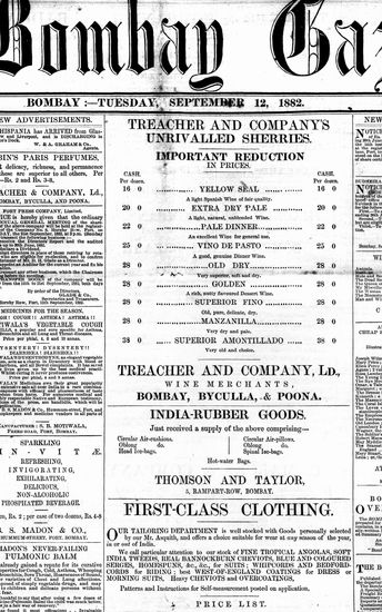 The Bombay Gazette, 12 September 1882