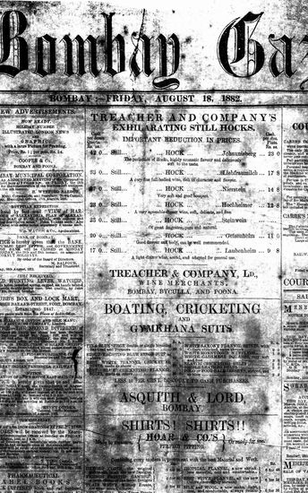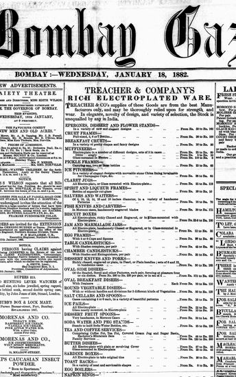 The Bombay Gazette, 18 October 1882