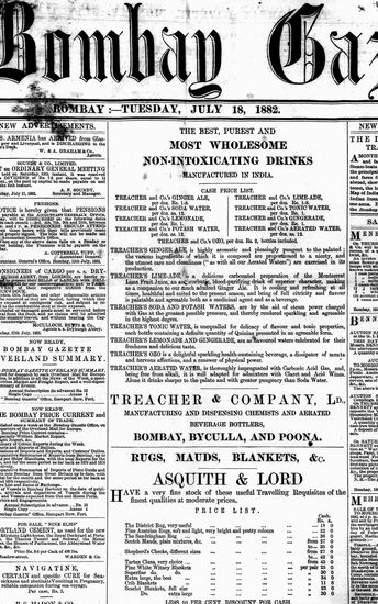 The Bombay Gazette, 18 July 1882