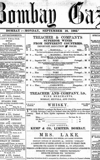 The Bombay Gazette, 18 September 1882
