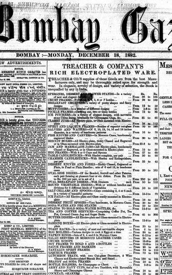The Bombay Gazette, 18 December 1882