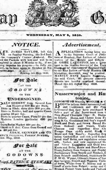The Bombay Gazette, 12 May 1830