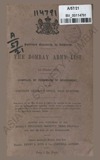 Bombay army list, 1st October 1883,corrected upto 30th ...